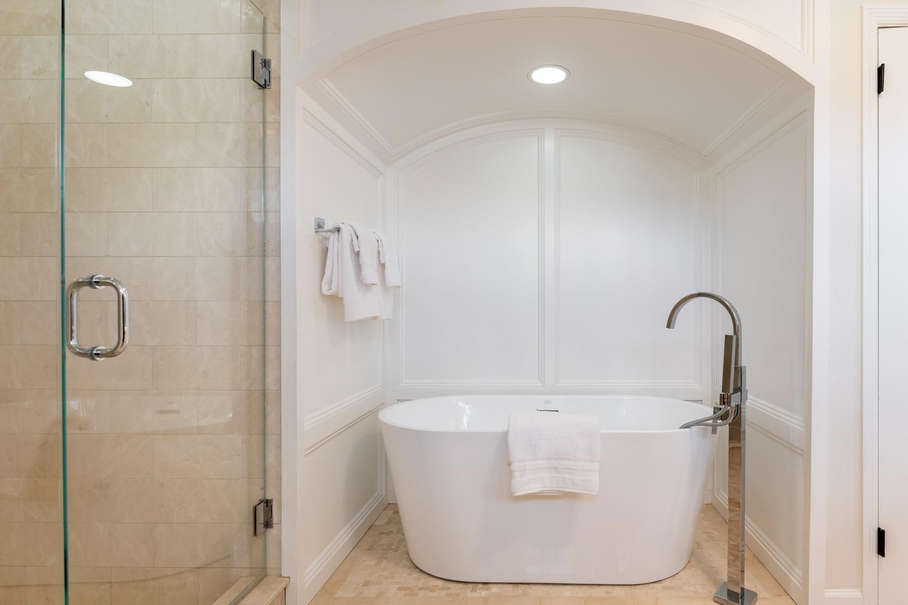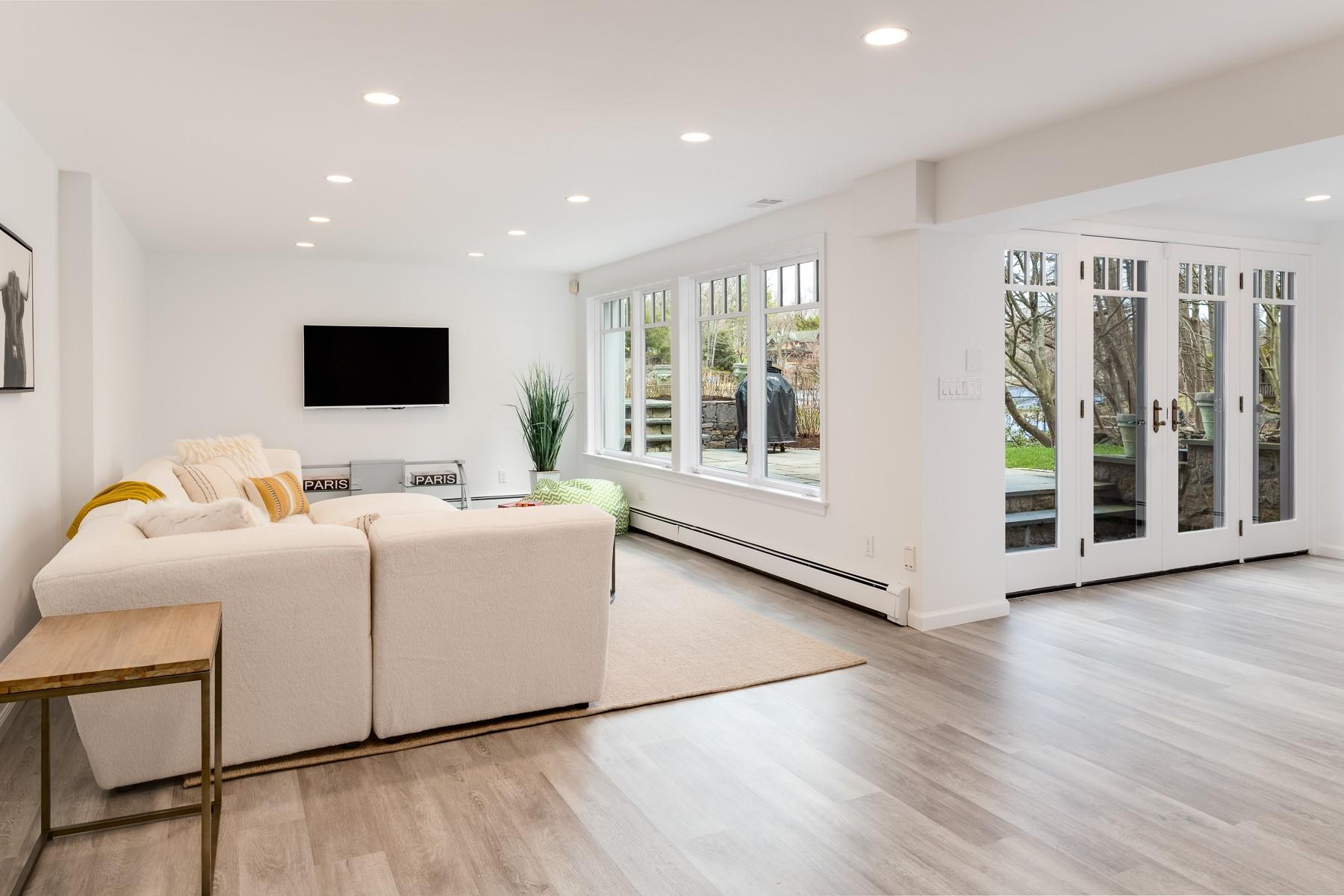 The essence of luxury lakefront living blended with sleek simplicity and elegant colonial touches. An hour from Manhattan, this sun-drenched 5300 SF private waterfront property in Armonk's coveted Windmill Farm is defined by its open-plan design, soaring ceilings, and seamless connection to its picturesque natural "lakescape". Fully-fenced, gated and generator-protected, the property offers specimen plantings, a level lawn, dramatic rock formations and a spectacular private dock jutting deep into the sparkling 135-acre North Lake. Swim, kayak, fish, savor fall foliage or ice-skate, four seasons of fun and beauty await. Meticulously renovated, the spacious stone & shingle showstopper offers pristine oak floors, crown molding and elegant marble bathrooms. The open kitchen boasts top-tier appliances, while the primary flaunts a cathedral ceiling and a sensational ensuite office. The lower level multi-tasks as a gym, playroom/hangout for kids, and, with full bath, an apres-lake cabana. Residency offers membership (MEC Certificate) to the iconic Windmill Club which offers a renovated club house, sandy beach, swimming, volleyball, boating and tennis. For grownups, there are dinners, parties and fun gatherings. Minutes to Byram Hills schools, downtown Armonk and easy drive/commute to Metro-North.